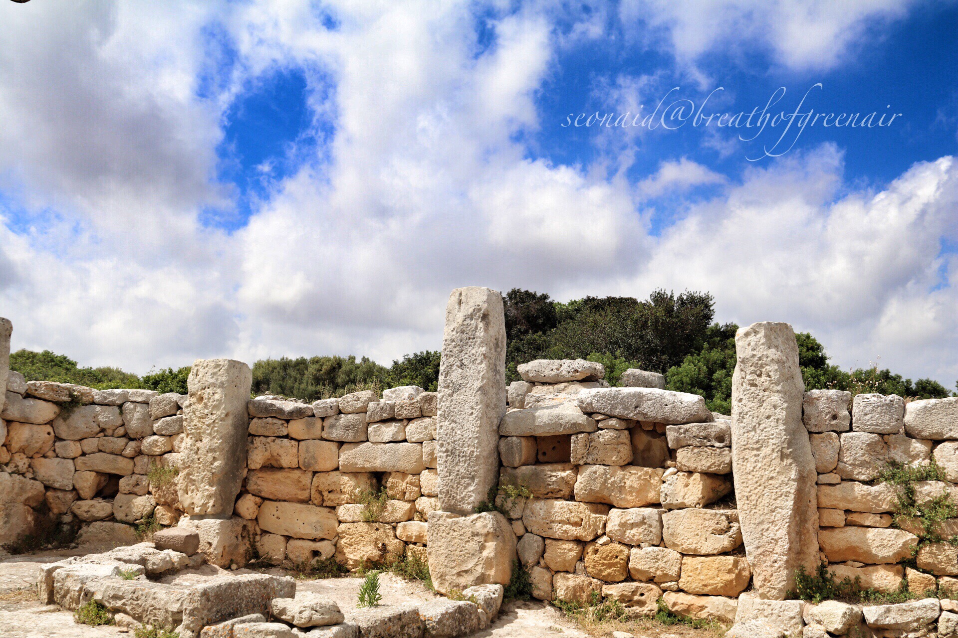 The layers of history here are tangible, emerging in layers beneath your feet as you wander among the stones and bones of people whose lives were over many millennia ago, and yet who have influenced the far away, less sun washed isle of Britain. They roamed far across the ocean waves to trade, and came back here to these villages to live and love their families in ways we might find surprisingly familiar. The breeze stirs the golden sea of oats and butterflies dance upwards into the blue cloud filled sky. Sights as old as time itself.