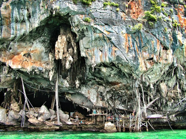 This was taken from a boat while we were travelling between islands in Thailand. We were told that birds nests were harvested from the roof of these caves, and exported to China for the infamous birds nest soup. All very foreign to me, and the ladders looked so rickety that I can only assume that health and safety regulations were foreign to this area.