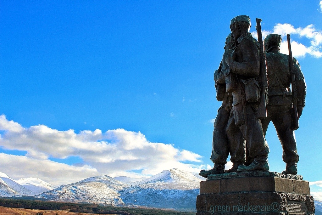We stopped at the Commando Memorial, which overlooks the harsh mountainous training ground used by the British Commandos during World War II. Potential candidates travelled up from as far as London, on a 12 hour train journey, and then had to walk 7 miles with all their equipment, to the training camp. Many were weeded out and set home at this point. Those who were left learned how to survive on next to nothing amid these mountains. Many current day commandos who have lost their lives in recent conflicts choose to have their ashes scattered here.