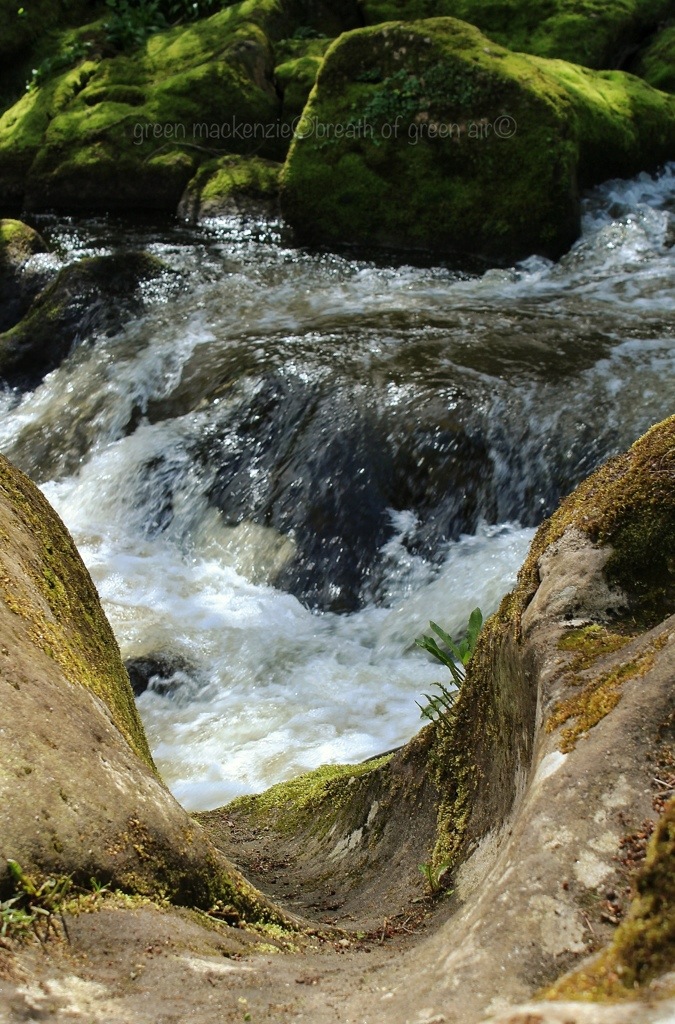 There are grooves, channels and cups, carved by the water, which invite a second look. These watery rocks seem to refresh not just the senses but the soul and spirit, putting us back into contact with the magic of the earth, and of nature. Resting here we are drawn out of ourselves and into the wider wonders of life pouring freshly through the rocks and soil of our planet. The miracle of fresh water on an orb of cooling rock, spinning through the stars and the unfathomable depths of space.
