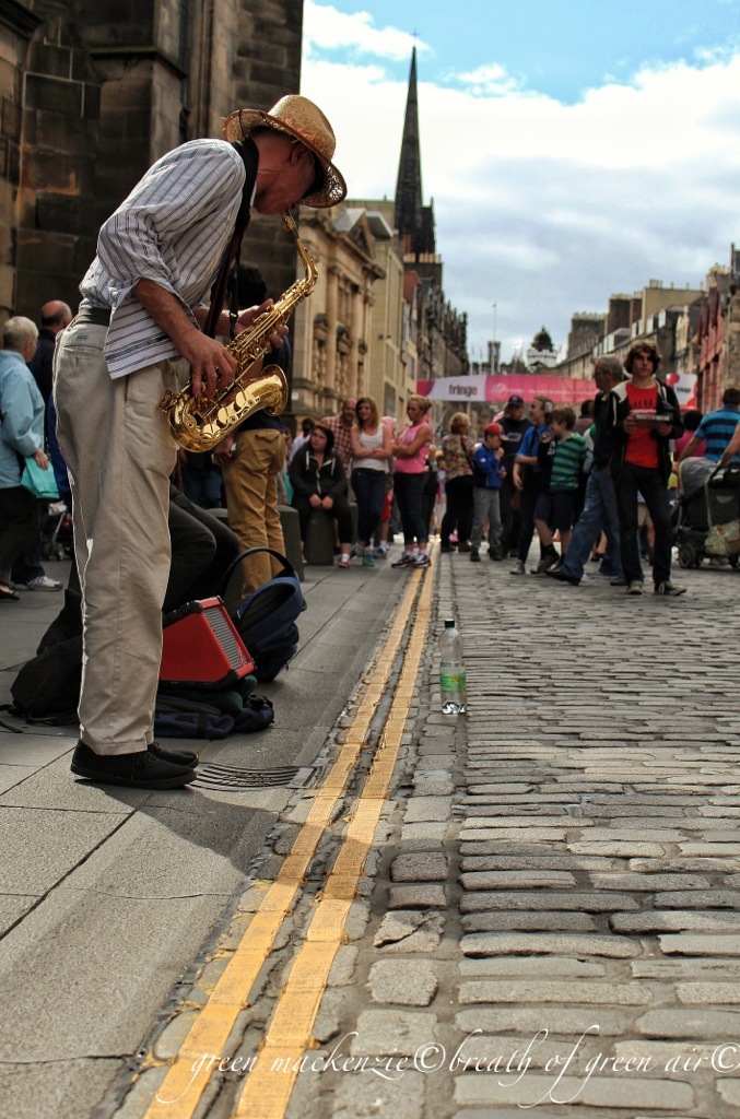 Edinburgh is a very stimulating place to be in August…busy, but invigorating. There is so much to see its difficult to focus, and this was true of trying to photograph this thespian filled street…. Where to point the camera…what to include in the shot and how on earth to find interesting angles in a busy street filled with people!!