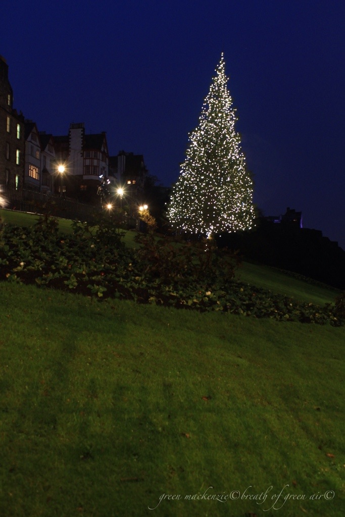 I decided to try and get a less blurry shot of the Norwegian Christmas tree I showed you last week on the Mound, and despite the rain, and no tripod I think it came out quite well.