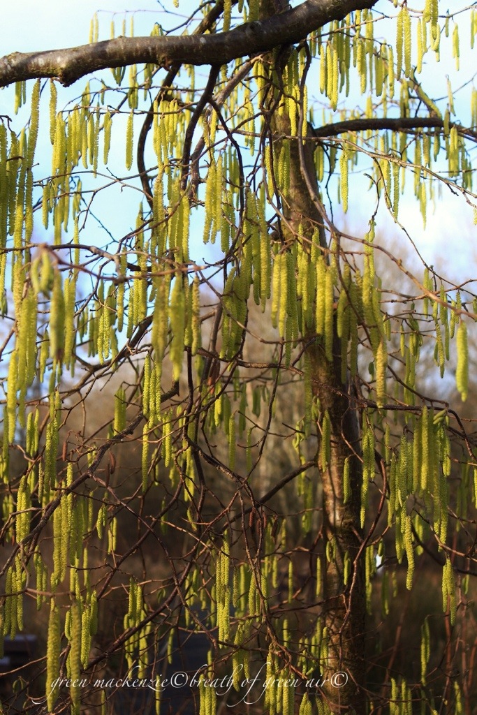 The hazel tassels ripple in the slight breeze, golden flags sent as a promise of the sun filled days to come. A signal of the truce drawn between winter and her short cold days, and the warm long days of summer which wait in the wings for their cue. Joyful to behold after the grey cloth of winter, this is priceless gold, lifting the spirits and filling us with hope.