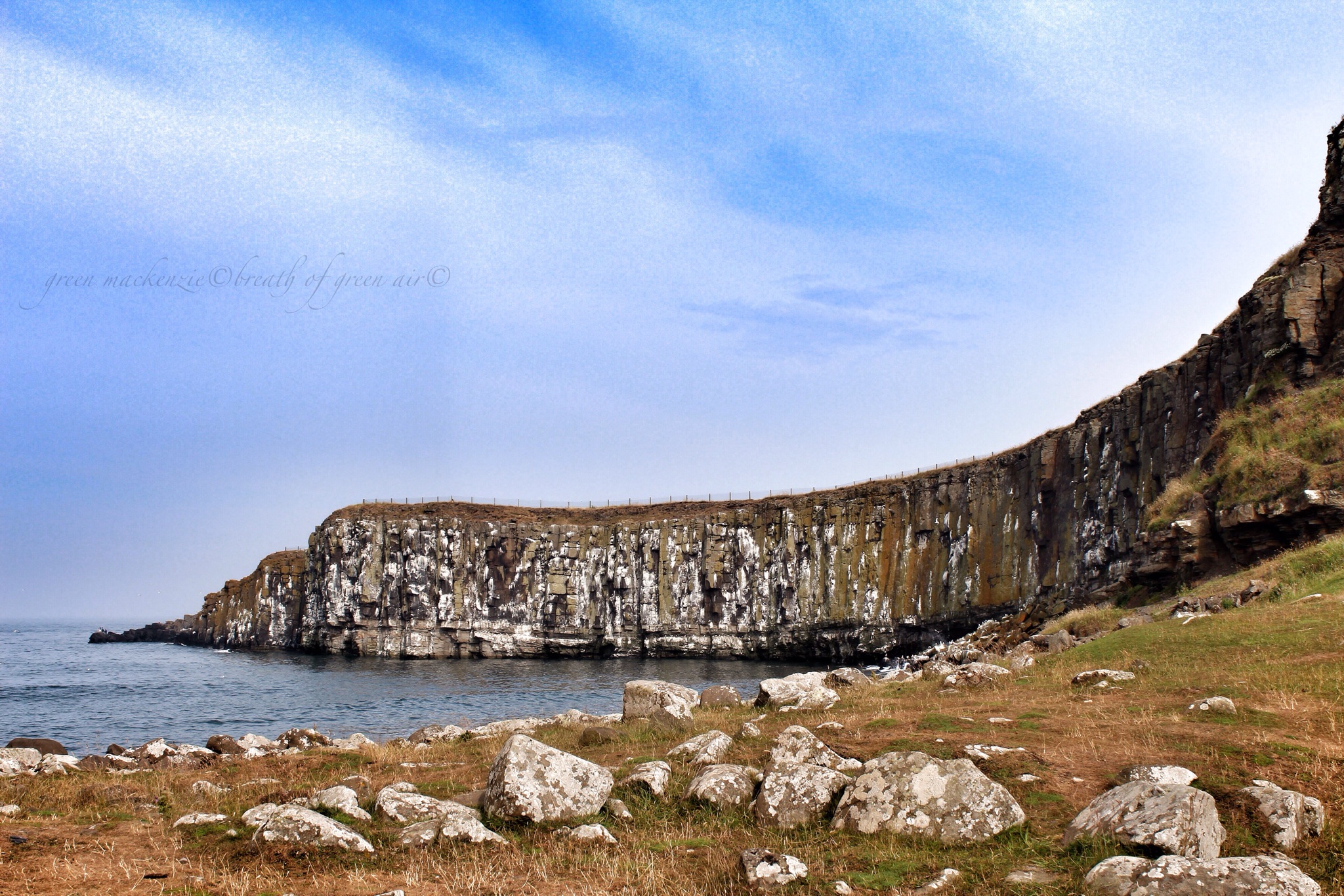 This incredible cauldron like cliff was cut by nature, and given a wonderful linear texture. The rocks make perfect perches for the thousands of seabirds who nest here every year. Man has exploited this textured cliff for millennia, probably enjoying the eggs of the seabirds. Neolithic flint arrowheads have been found on the cliff tops along with ancient defensive walls. However it’s defensive position and great sea views were enhanced fully when Dunstanburgh Castle was built on the cliff top. There is a great sense of safety as you gaze out from here across hundreds of miles of glittering ocean.