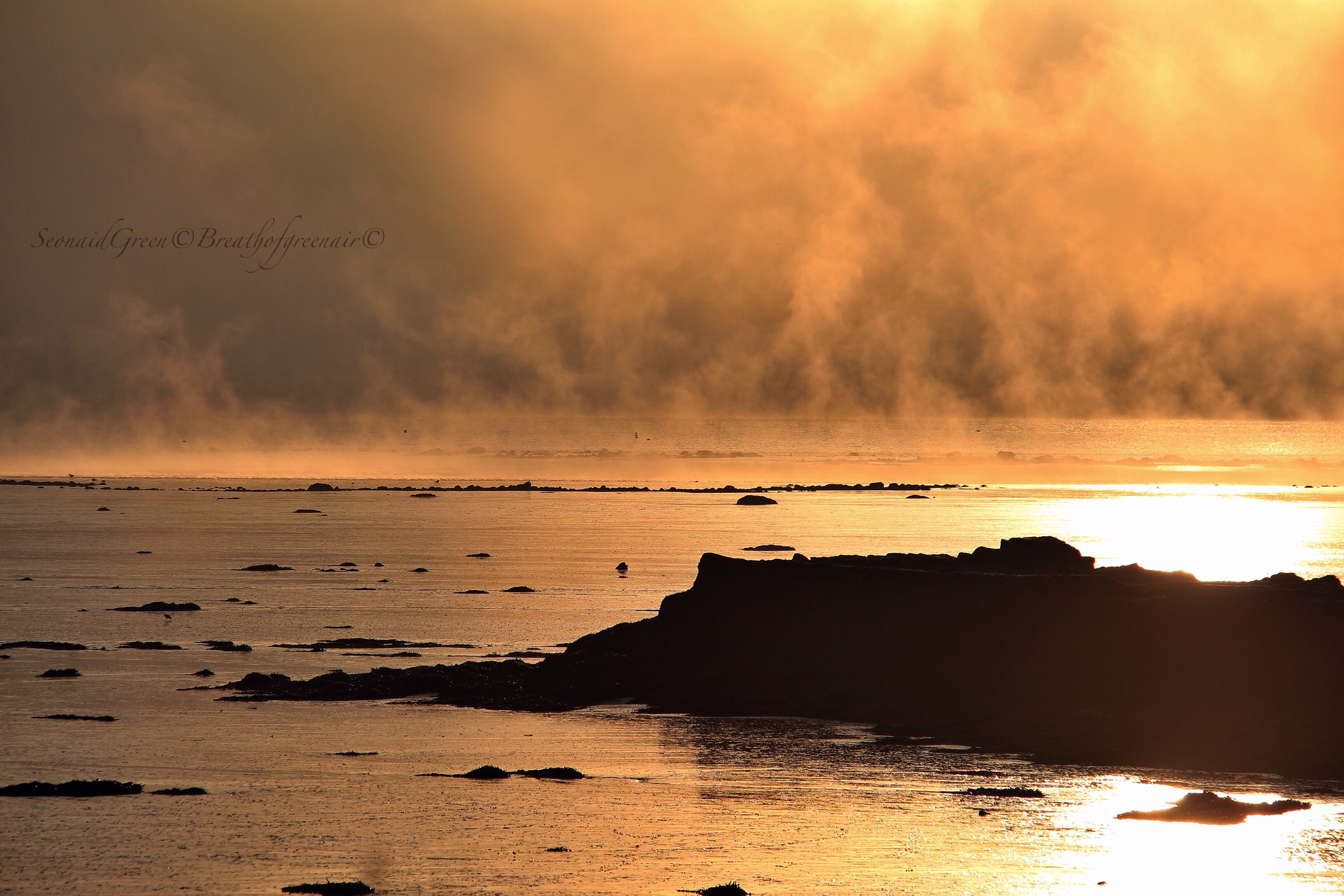 For our fact lovers these are the rest of the photos taken from the shore of Culross on the Firth of Forth in Central Scotland. It was late afternoon and the freezing mist parted just in time for the setting sun. Rocks and islands out in the Firth suddenly became visible in pools of mist shrouded light, and sea birds could be seen winging their way home.