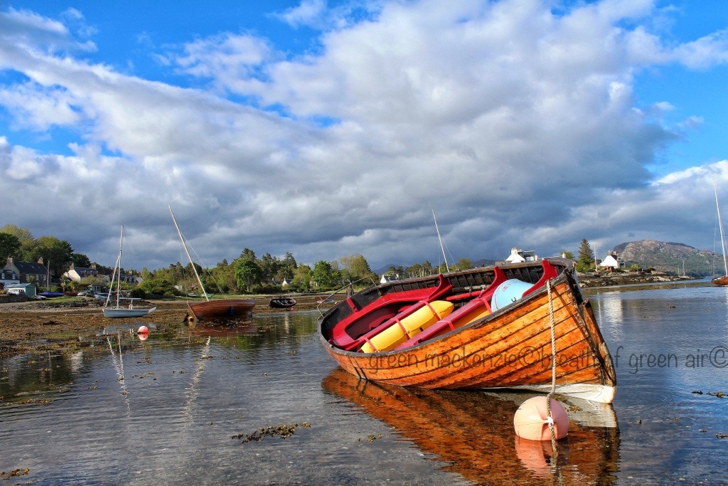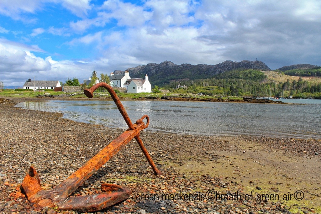 There’s a tide licked bay which looks West towards the Hebrides. Filled with pink sand , and cupped in the hands of the high mountains. It’s soft warm breezes blow thousands of miles across open ocean, from the Caribbean, before whispering their tales through these trees. People have lived here since the mist first lifted away from the sea. Wave after wave have ‘discovered’ its gentle peace, and the Celtic monks named it Sanctuary, for six miles in all directions. Recently this beautifully carved sign has been placed to mark the Holy Well, which runs as fresh and sweet as ever.